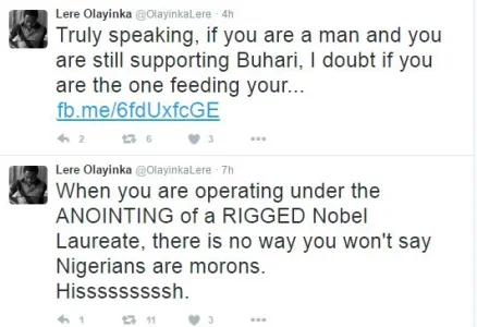 “When you are operating under the ANOINTING of a RIGGED Nobel Laureate, there is no way you won't say Nigerians are morons”, he said on his social media account.